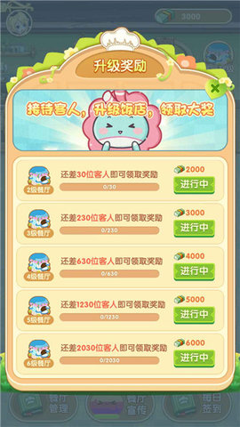 1.这个游戏迎合了大多数玩家的兴趣,玩家可以不断尝试新的菜肴,让更多的顾客喜欢。