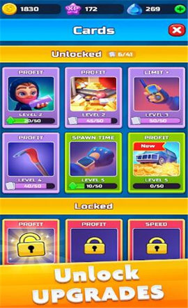 3.收集大量卡片和特殊物品以增加您的进度并加入强盗升级。