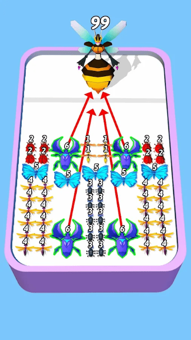 合并大师昆虫融合这款游戏采用清新简约的卡通风格制作