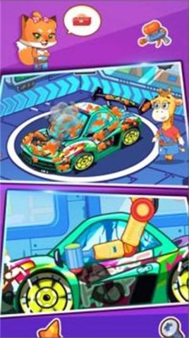 2.全面升级的水枪,全新的洗车刷,经过有趣的清洗互动,让车辆更闪亮。