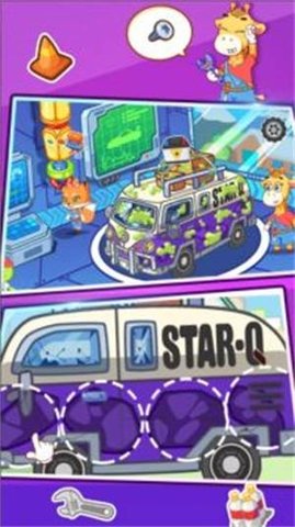 3.模拟修车的具体场景,运用图形配对、辨别位置等互动,提高玩家的思维逻辑。