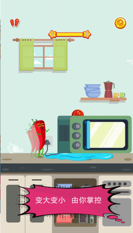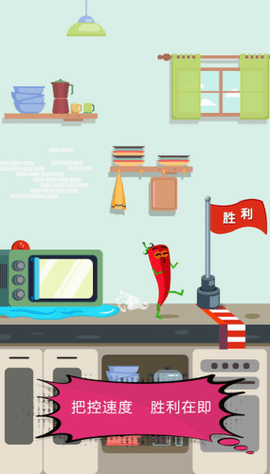 1.在厨房里体验各种障碍和冒险,有丰富的食物角色,可以看到辣椒、香蕉、茄子等可爱形象。