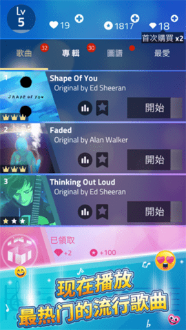 整个游戏清新美观,各种流行歌曲层出不穷,考验着点击播放模式的眼力和手劲。