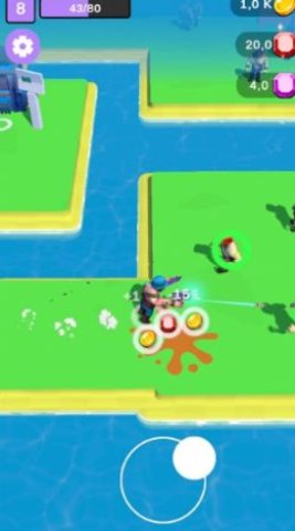 英雄的地盘安卓版是一款射击游戏,使用虚拟摇杆来控制角色定位和射击动作,我们需要击败敌人来赢得更多的领土,当我们可以获得击败敌人的奖励时,我们可以使用奖励购买不同的武器。