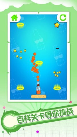 游戏的核心玩法是玩家通过控制瓶盖的弹射方向打小星星来取胜