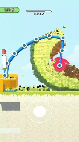 一款物理玩法独特的挖土机游戏,你要想尽一切办法推墙才能过关,你需要有一定的耐心和挑战困难的心态,你需要在挖墙的同时赚取金币,赚到金币才能升级气桶、动力、升级长度。