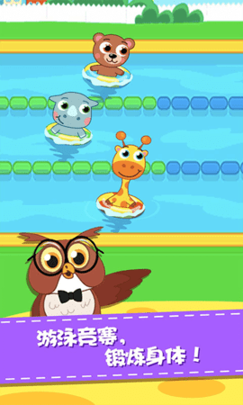 幼儿园还将举办动物游泳比赛。你需要带领动物们走向胜利,放学后排队,帮助动物们收拾书包,按顺序上车。
