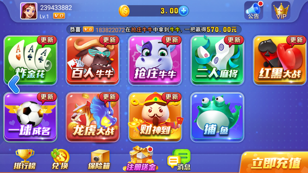 2、英皇棋牌娱乐每日上线就送海量游戏金,输光还有免费的救济金可拿