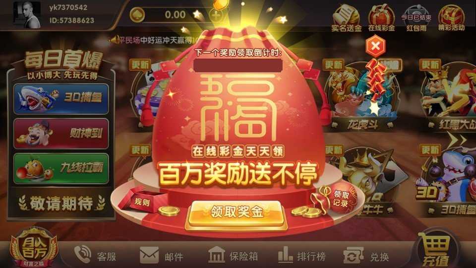 3、支撑万人在线,金币文娱,现在体会登录还送很多的金币,以及一些初始礼包。