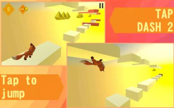 1、你可以控制小狐狸跳跃和奔跑,跳跃到下一步,捡起所有的钻石