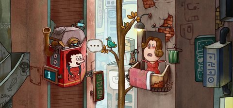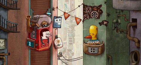 4、动画风格的绘画游戏场景,视觉上就像看漫画一样有趣,沿着电梯的运行路线,探索未知的世界。