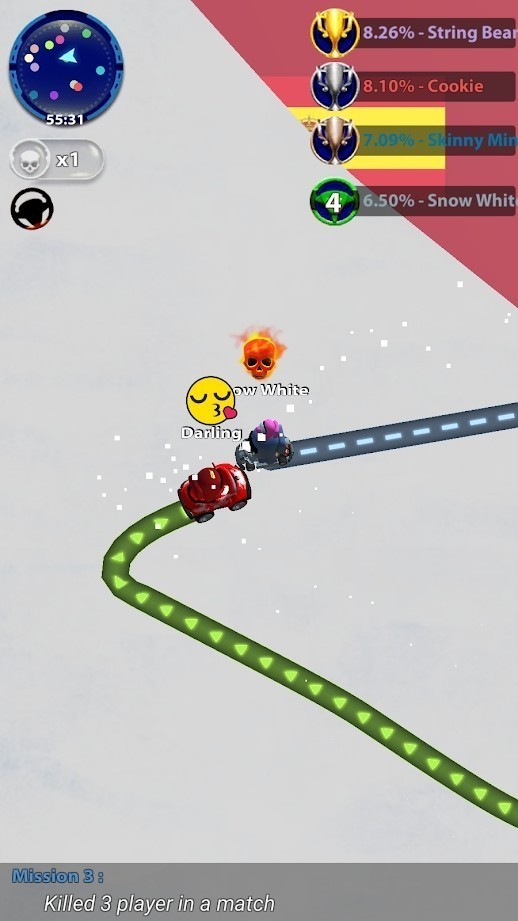 1、驾驶自己的卡丁车同其他玩家在一个平台上进行竞速竞技,胜利者会获得大量的奖励。