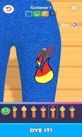 2、在游戏中,玩家将根据自己的想法设计牛仔裤,并用各种染料在牛仔裤上印上图案。