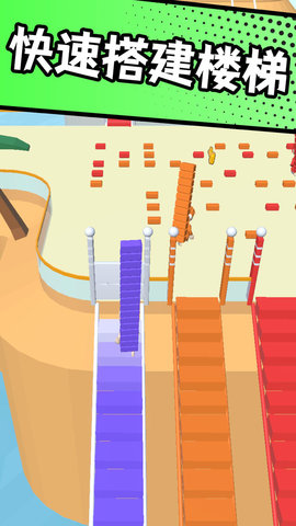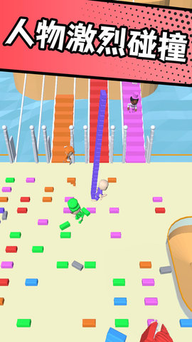 2、建造一条彩色的高架道路去到达胜利的另一边,让你的角色登上桥,快速奔跑,并成为第一个。
