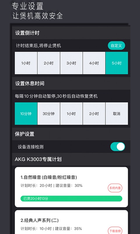 2、烧是一款非常好用的手机煲机软件,操作简单方便,各种各样款式的耳机都可以使用,一键煲机智能控制,专业的煲机定制计划,让你的耳机重获新生,快来下载吧