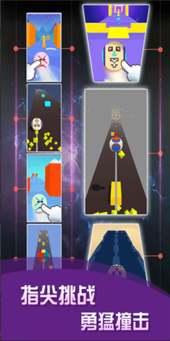 3、玩家控制球不断向前移动,要求玩家运用高超的球技,及时避开障碍物,挑战各种场景;