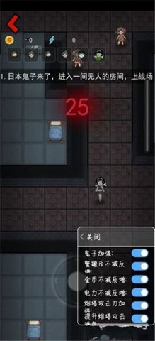 3、升级炮塔,增强战斗力,不断消灭幽灵,保护宿舍人。