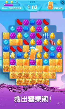 2、蜂蜜模式:目标是营救被蜂蜜困住的糖果熊。在蜂蜜旁边消除它,以拯救糖果熊。每个空格中显示的单元格数表示完全清除蜂蜜所需的清除次数。