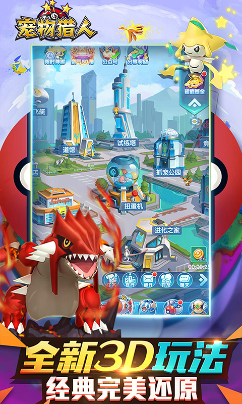 免费置换闪光精灵,让你的战力突破极限!精灵支援,3D萌宠带你玩转精彩口袋世界!自定义PVP对战,燃出你solo对战激情!更有属性道馆、神兽专属装备等全新玩法待你体验!