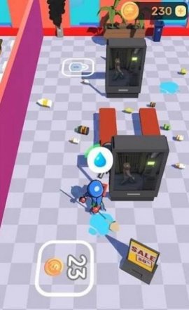 3、使用硬币解锁更多的商店在商场和升级您的移动和地板清洁的速度。