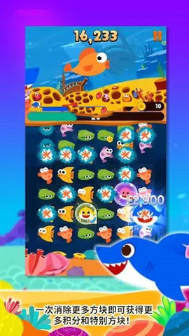 3、陪鲨鱼宝宝在海里四处游,轻拍屏幕引导鲨鱼宝宝。