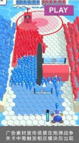 3、在这里,玩家将左右移动你的堡垒,通过增益门发射你的小兵,增加小兵数量。
