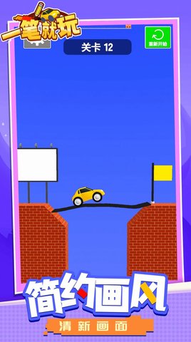 一笔就玩是一款休闲益智游戏,具有简单的卡通图片和创新的玩法。需要通过画线为汽车创造过关机会,游戏中的每个关卡挑战都有时间限制,游戏测试了玩家的临时反应能力和创造力。