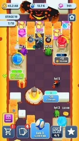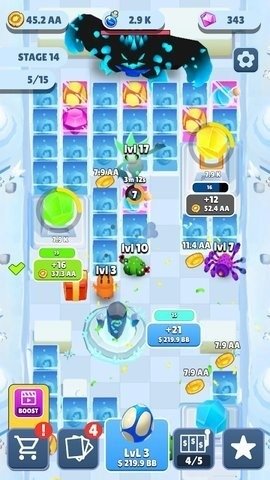 在Idle EVO Tycoon(空闲EVO大亨)游戏过程中,玩家可以持续强化自己的战舰,轻松选择游戏中最新的Idle物品,在游戏中,不断开始最新的投资,但你可以每天升级你的装备和道具来攻击其他人。