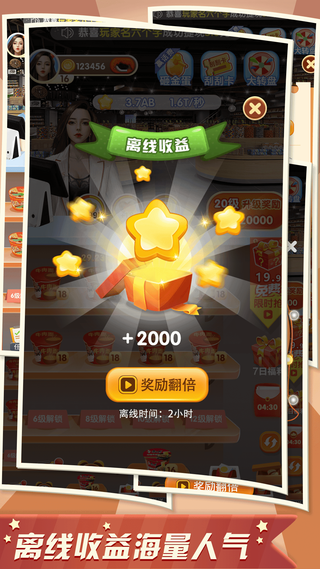您可以在其中自由经营一家超市。您可以在这里体验这个特别的乐趣。经营自己的超市。请访问这里认真完成各项任务。总体来说是一款非常不错的红包赚钱游戏,轻松简单的经营游戏玩法,趣味十足的游戏内容,玩起来的操作感还是很不错的哦,慢慢的经营你的商店,同时每天都可以获得红包的奖励。