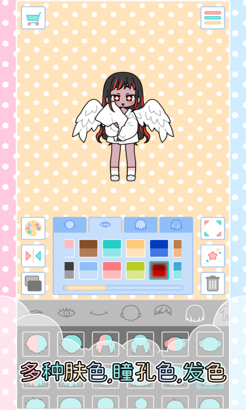 2、缤纷多样的色彩随心完成不同的发色,还能选择角色的肤色和瞳孔颜色。