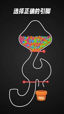 2、手指点击切换销机构,使球呈现相同的颜色,最后顺利落入底部盒子。