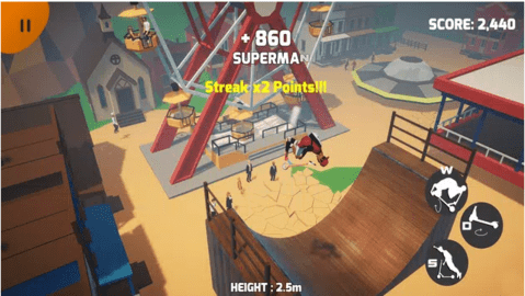 3、在极限滑板车游戏中有许多关卡的挑战,玩家应该在游戏中学习更多的技能。