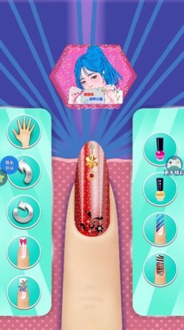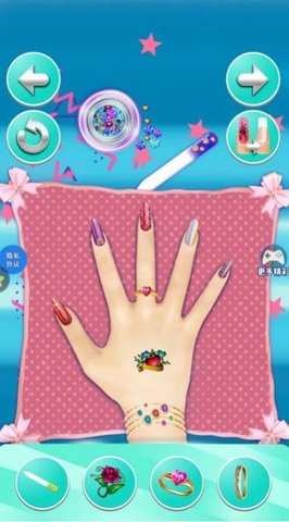 3、选择您最喜欢的指甲油、图案贴纸、可爱的指甲贴纸和装饰品,帮助Alice打造美丽的指甲。