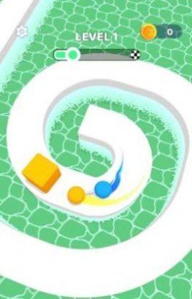 1、两个球绑在一起,蓝色和黄色,保持前进,有蓝色和黄色的障碍在路上。