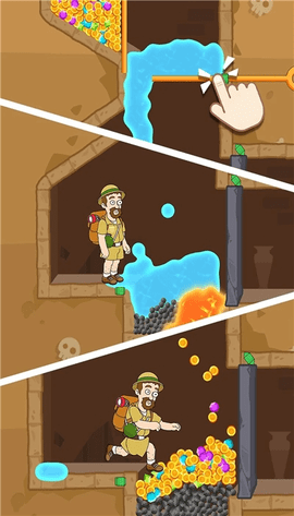 3、游戏中的炸弹和岩浆也可以由你自己引导,总之,需要避免它们伤害到小哥哥。