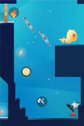 天狗偃月之日的游戏界面非常简单,它使用逐渐而丰富的色彩设计去创造整体艺术,再加上美妙的音乐旋律,让游戏和故事看起来既独立又融合,在游戏中,玩家通过操作元素物品来帮助天狗制服小野兽,并收集星石余烬来解锁和学习技能,星石在故事中也扮演着重要的角色,影响了天狗、四元素和太阳兽。