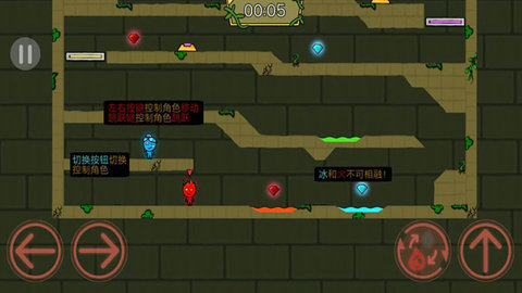 森林冰火人勇闯森林神庙手机版是一款从PC移植而来的趣味益智游戏,森林冰火人勇闯森林神庙完美还原PC版的关卡、操作和玩法,全新的关卡内容,带给您非凡的特色游戏玩法体验。