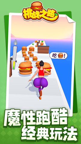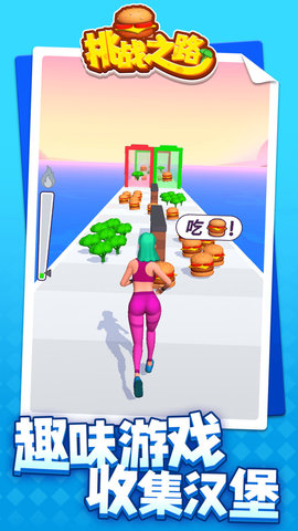 挑战之路安卓版手游是一款非常魔幻的休闲益智趣味游戏,你所要做的就是让你的角色向前冲,吃尽可能多的汉堡,你吃的汉堡越多,得分就越高,游戏玩法有趣放松,只要动动手指就能操纵。