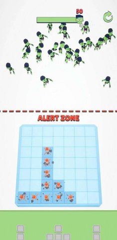 3、以俄罗斯方块的形式消灭丧尸,不好,火车头出现大量丧尸怎么办。