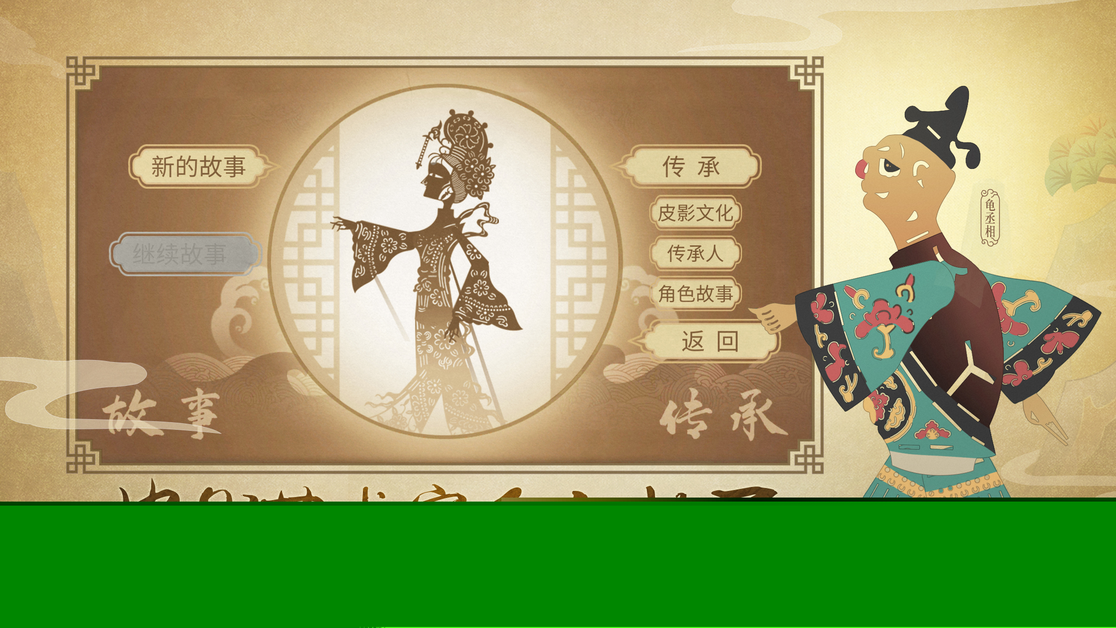 2、原汁原味的人物剪纸以及背景音乐,让你沉浸在皮影的世界里进行闯关探索;