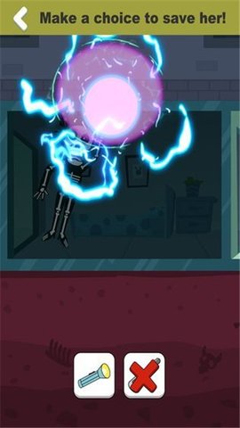 3、你必须想办法帮她摆脱困境,仔细观察现场并选择合适的道具。