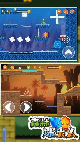 他们两人击败了在古庙进行的另外三次实验,现在他们面对的是最神秘的,帮助火男孩和水女孩通过这个益智游戏的所有关卡,使用水晶传送并收集宝石奖励点。