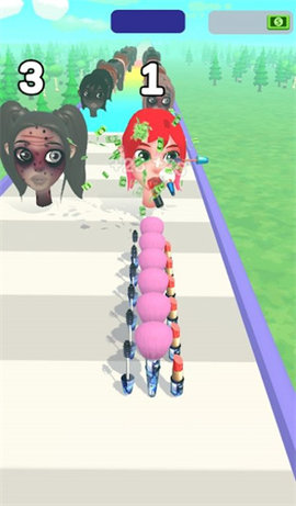 4、在游戏中,你可以感受到最精彩的跑酷游戏。通过持续的跑酷,角色可以成长。在赛道上,你可以收集各种化妆工具来应用化妆到你的角色。