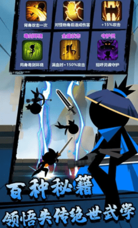 1、玩家在游戏中控制一个火柴人,用简单的横版摇杆控制火柴人进行血战。