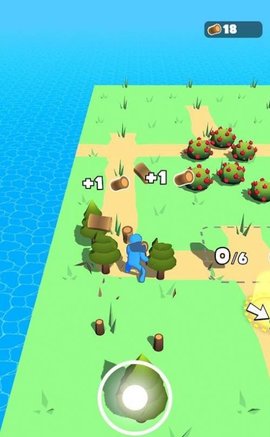 1、使用虚拟操纵杆控制角色的移动,收集或建造兵营。