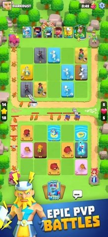 1、收集并升级几十个独特的英雄,赢得战斗并进入新的竞技场解锁史诗级的新单位和英雄。