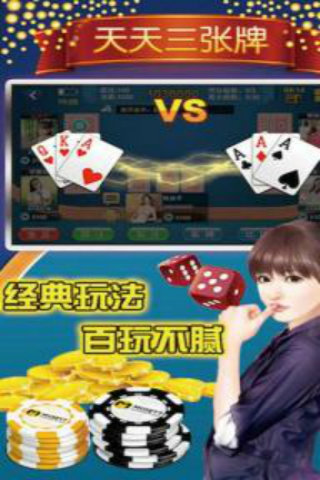 2、在这里玩家秀出自己的真本事来挑战全国各地的三张牌高手;