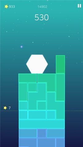 2、只有六边形下降才算成功,如果六边形因放置砖块而失去平衡,并从两侧的悬崖上跌落,游戏将失败。