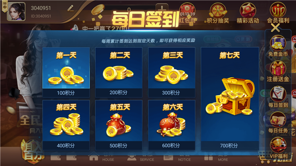 4、星月棋牌正版只要每天连续签到就送金币、话费、房卡等奖励,每天数量有限,只为前100名玩家提供。
