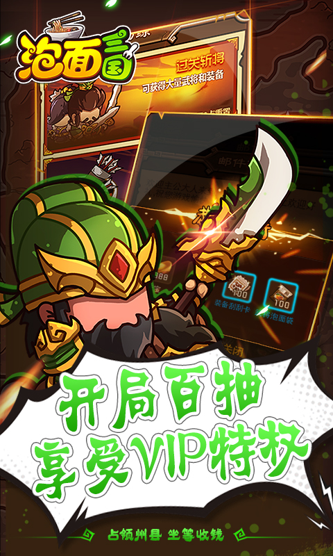 1、创角即送100武将抽卡和100装备抽卡!